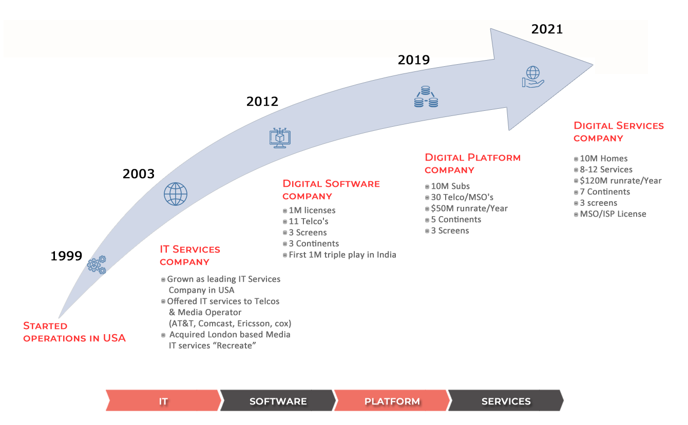 "Corpus" is a SDP - service delivery platform collaborating with multiple content companies, Telecom & Media delivery companies and devices delivering multiple Digital services like Triple play services, OTT, Gaming, Safety security, G2C services, Health and Education to millions of homes across the world. Video Corpus platform brings value to a broad spectrum of segments like Satellite TV Operators, State fiber grids, Telco's/ISP's, Cable MSO's and other FTTX operators. We have pioneered in creating integrated Video delivery systems along with content across any screen, any time and any place. Some of the largest Satellite TV, Triple play and IPTV operators have chosen Video Corpus as their platform partner to deliver PayTV, Triple play and IPTV/OTT services with a road map to deliver multiple other digital services to homes.